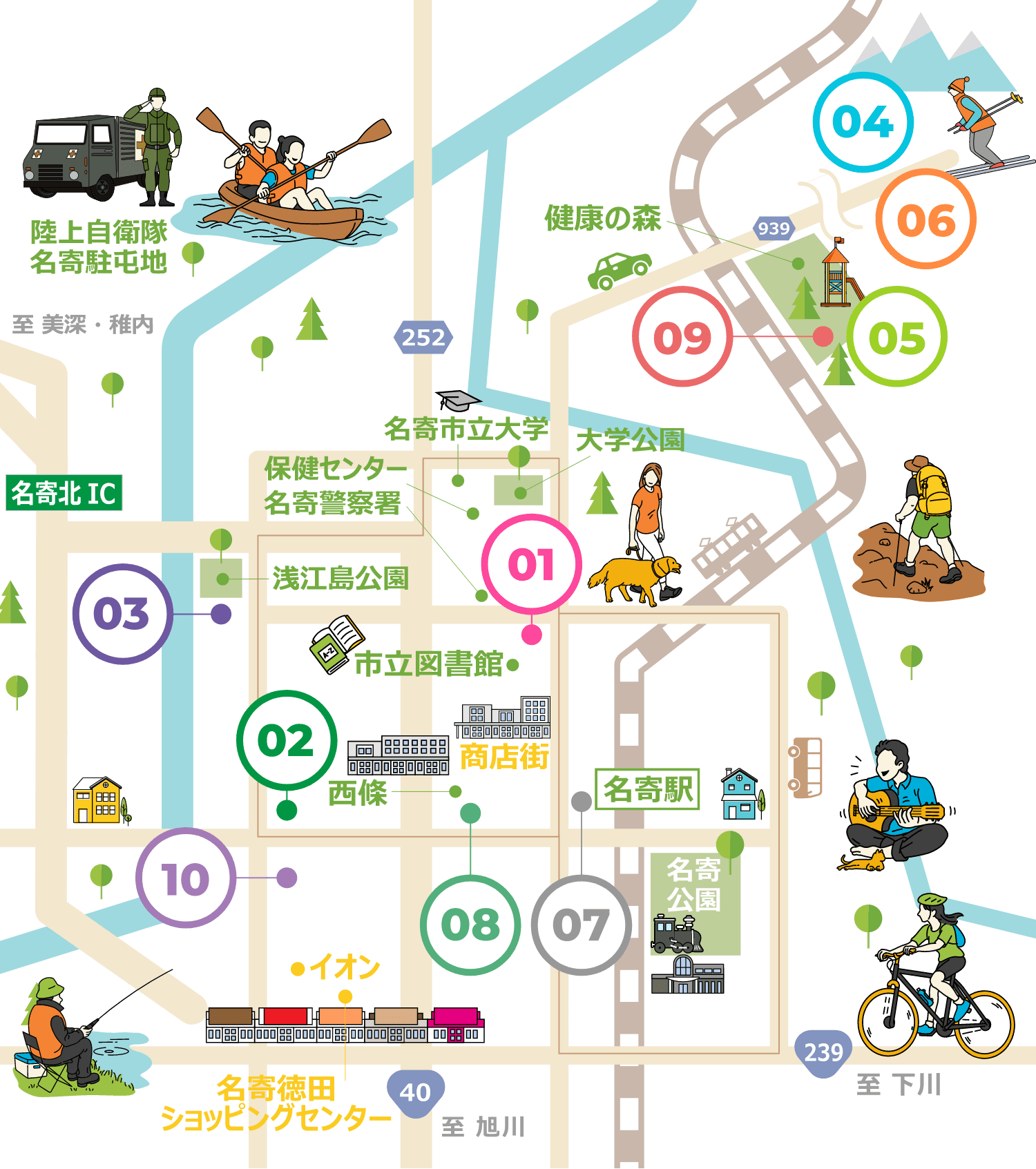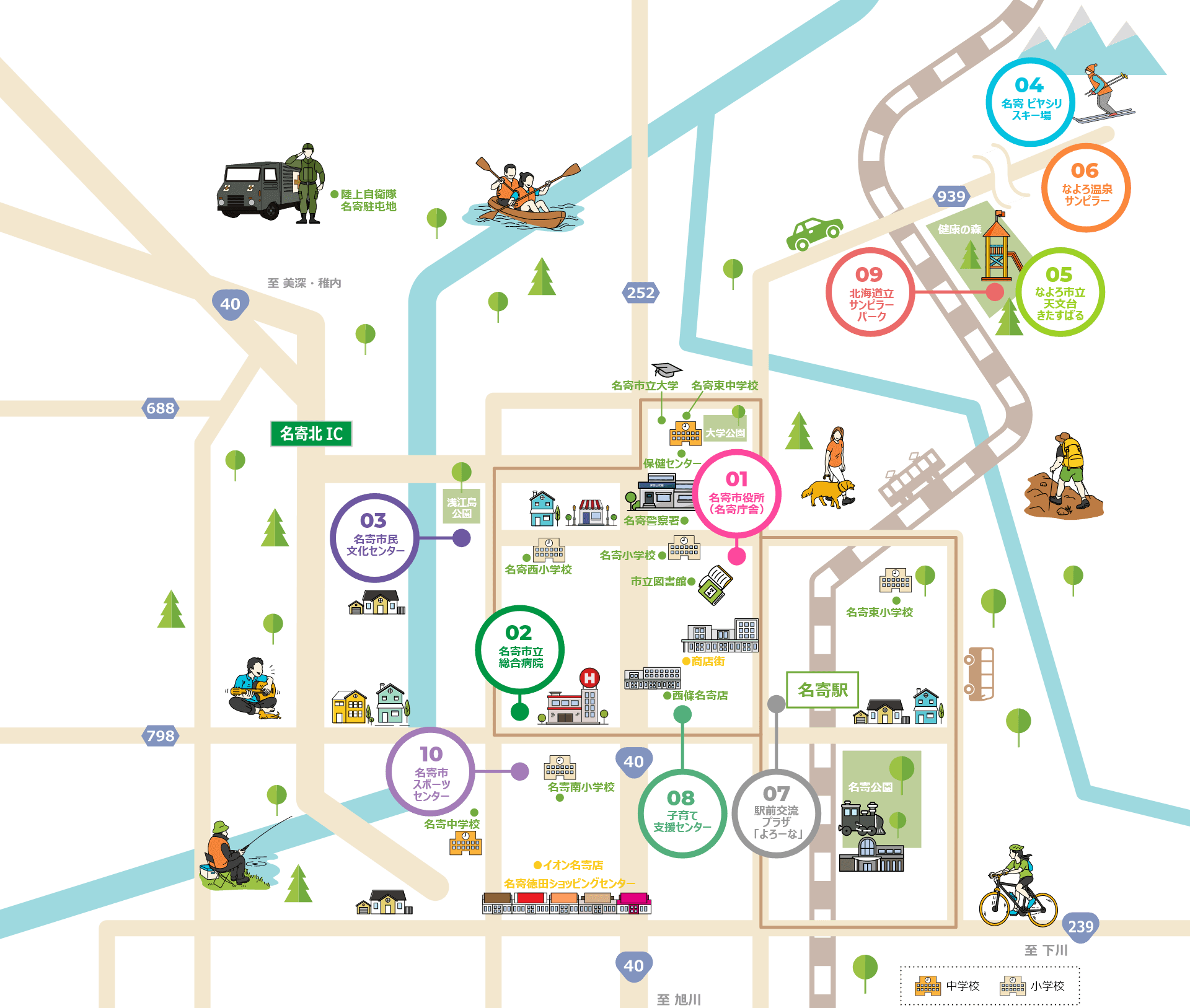 北海道の北部に位置し、天塩川と名寄川が合流する名寄盆地の中央にある基幹産業が農業の田園都市です。
